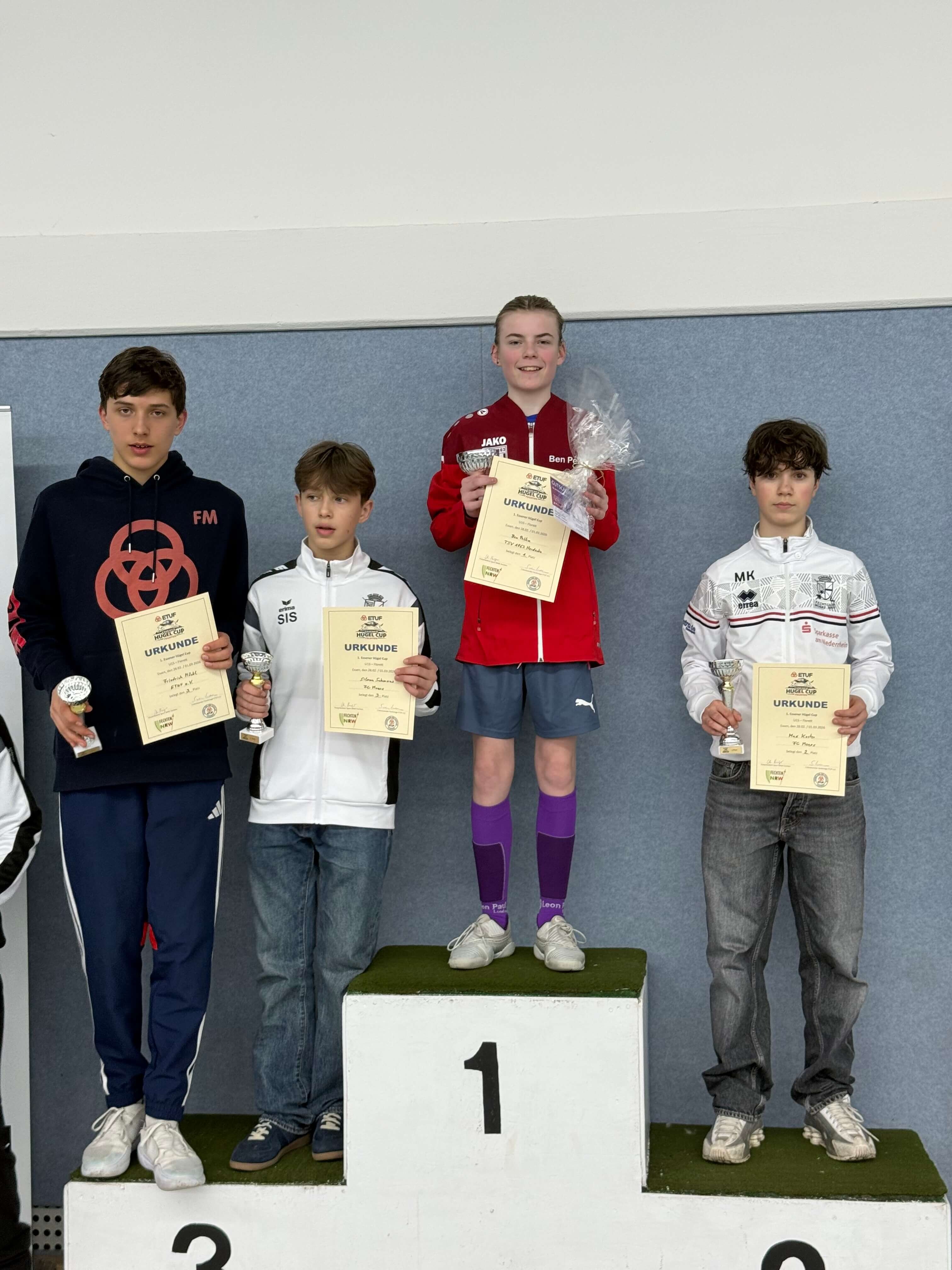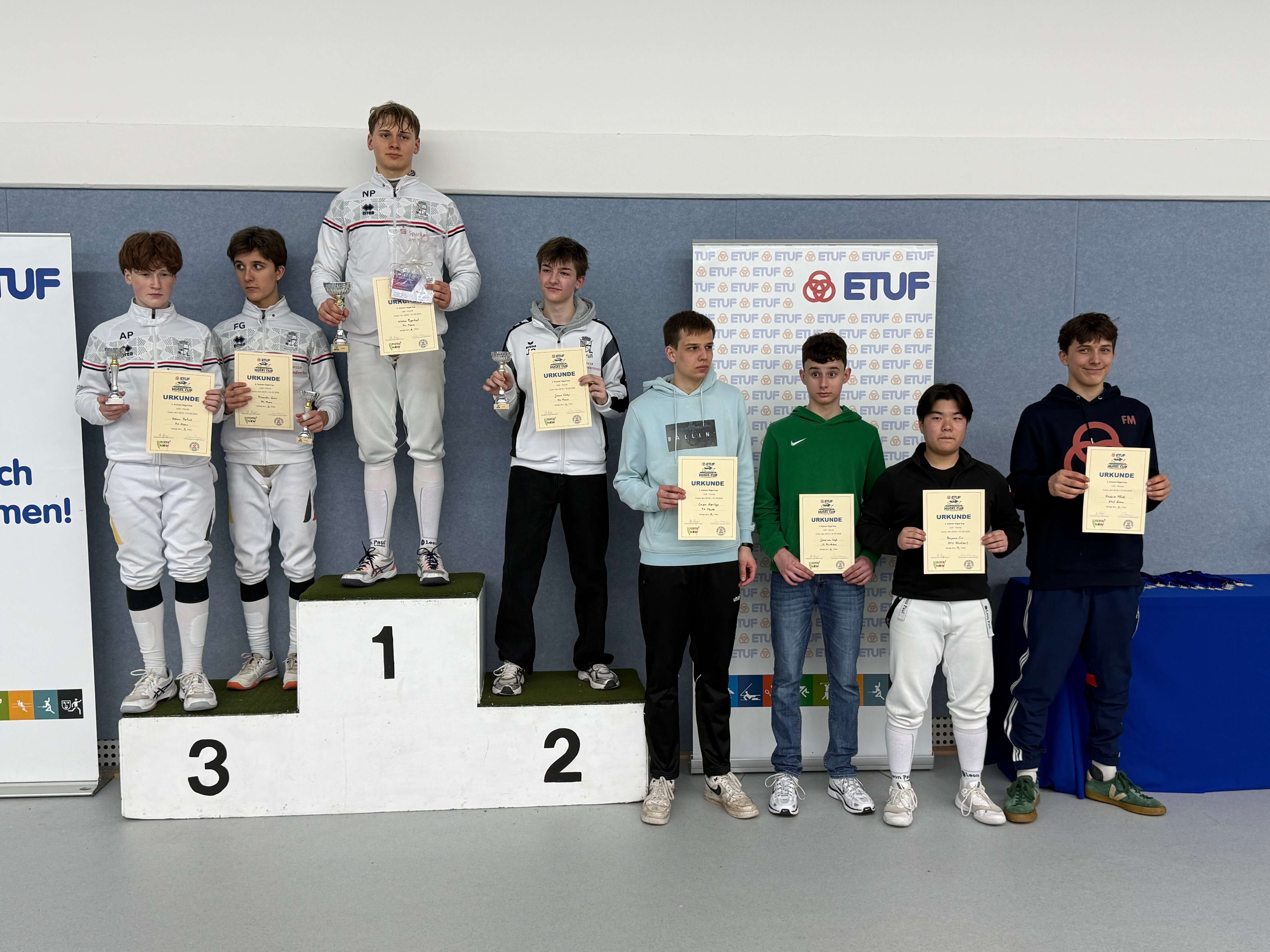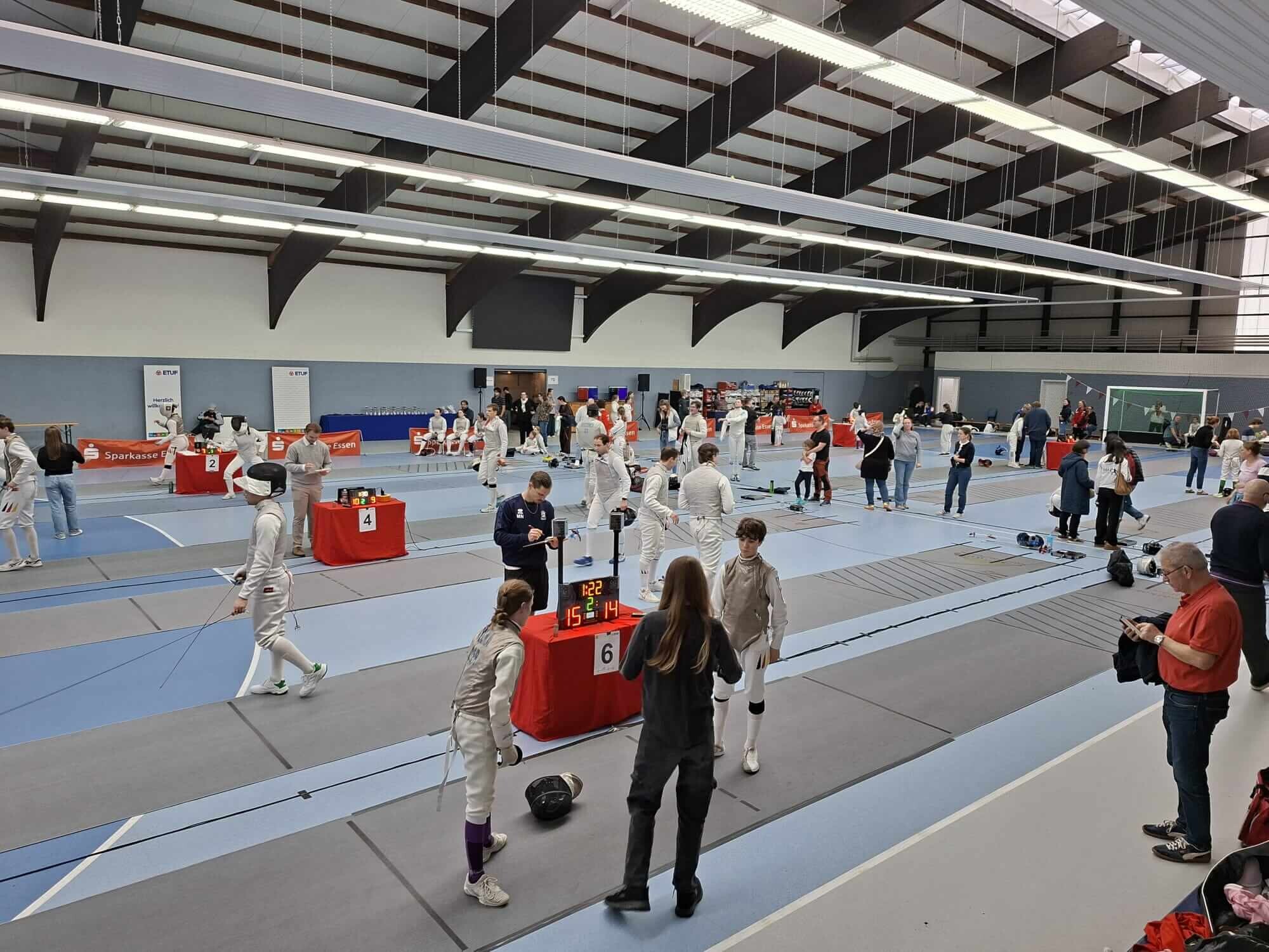 Am letzten Wochenende im Februar haben wir in Essen den Essener Hügelcup mit Kids Challenge und der NRW Manschaftsmeisterschaft U20 ausgerichtet. Insgesamt war das Turnier ein voller Erfolg und Dank der vielen Helfer vom ETUF (noch mehr Hände wären natürlich beim nächsten Mal noch besser!) haben sich die über 100 Fechter sehr wohl gefühlt. Besonderer Dank geht nach Düren und an der Verband für Support und Direktion.