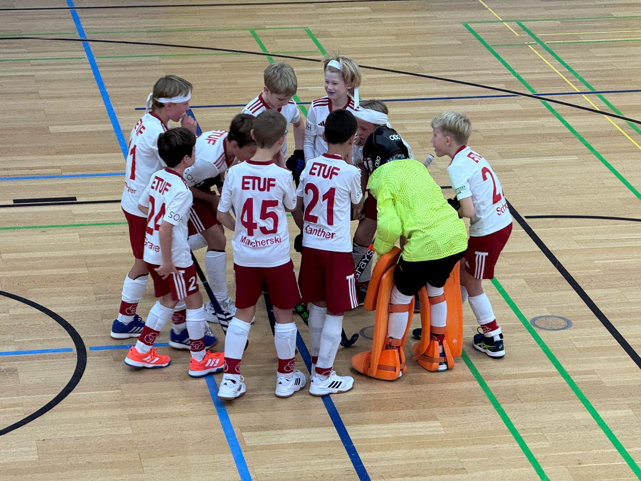 Auch unsere mu10 war am ersten Novemberwochenende mit zehn Spielern beim traditionsreichen Hallenturnier in Bad Kreuznach vertreten. Insgesamt traten in dieser Altersklasse 15 Mannschaften aus dem gesamten Bundesgebiet an. Schon die gemeinsame Anreise am Freitag zusammen mit weiteren ETUF-Teams verschiedener Altersklassen sorgte für echte Turnierstimmung. Untergebracht war die Mannschaft im Hotel Engel im Salinental, das den meisten Jungs bereits aus den Vorjahren vertraut war. Der Abend verlief gesellig, voller Vorfreude und mit spürbarer Aufregung – schließlich war allen klar: Das Wochenende würde intensiv werden.