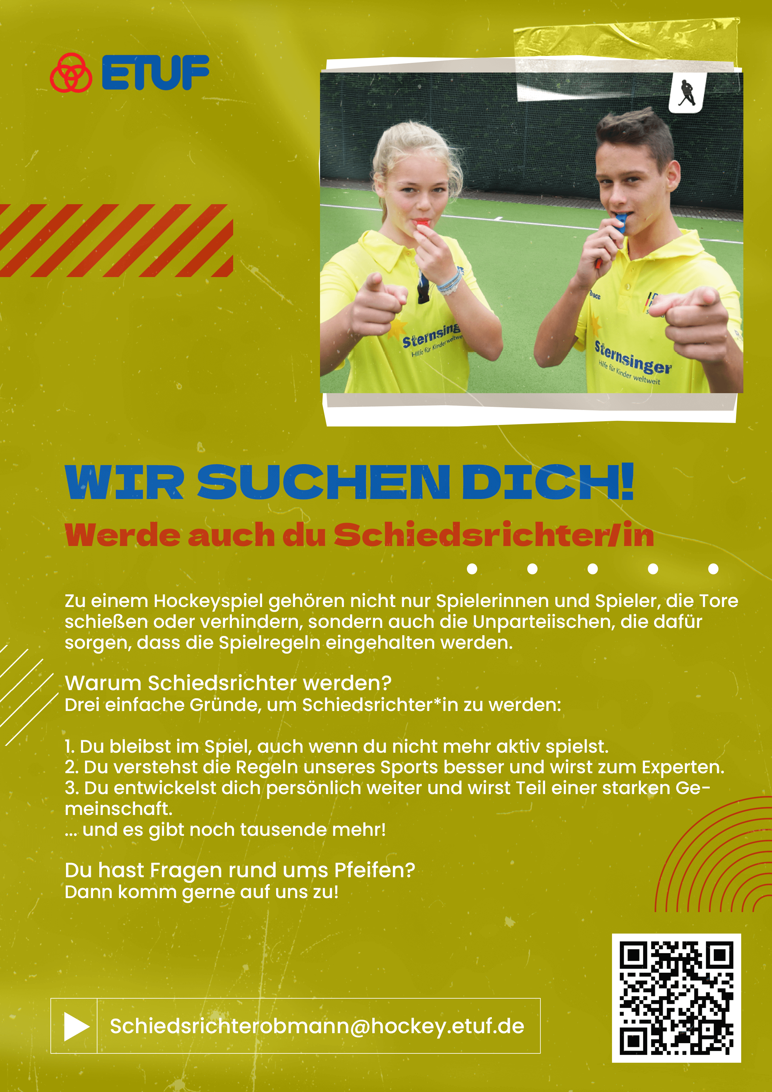 Dann komm gerne auf uns zu! Frag Nina Zibuschka Schiedsrichterobmann@hockey.etuf.de als Schiedsricher-Obfrau oder Andrea Marx in unserem Hockeybüro hockey@etuf.de