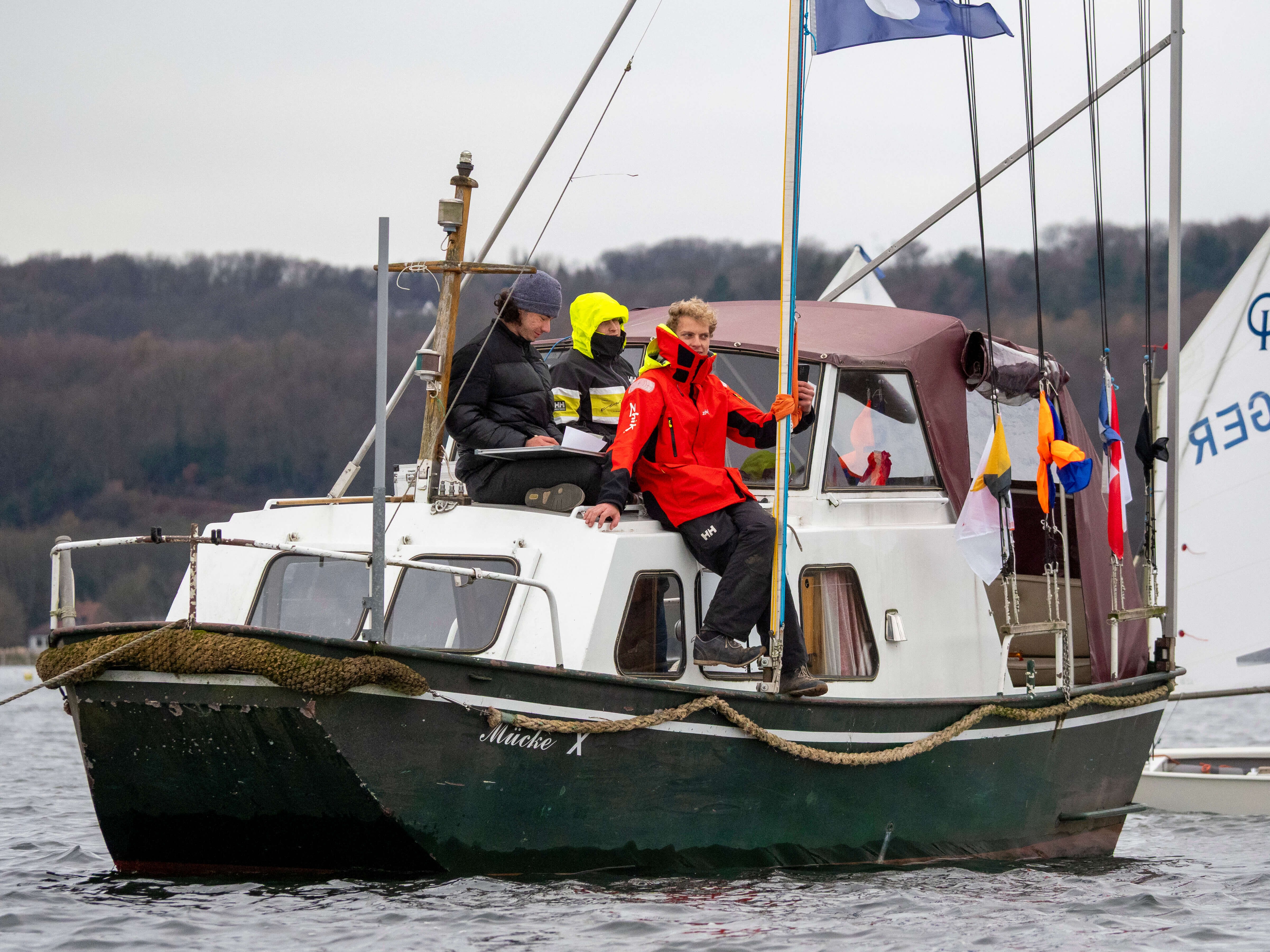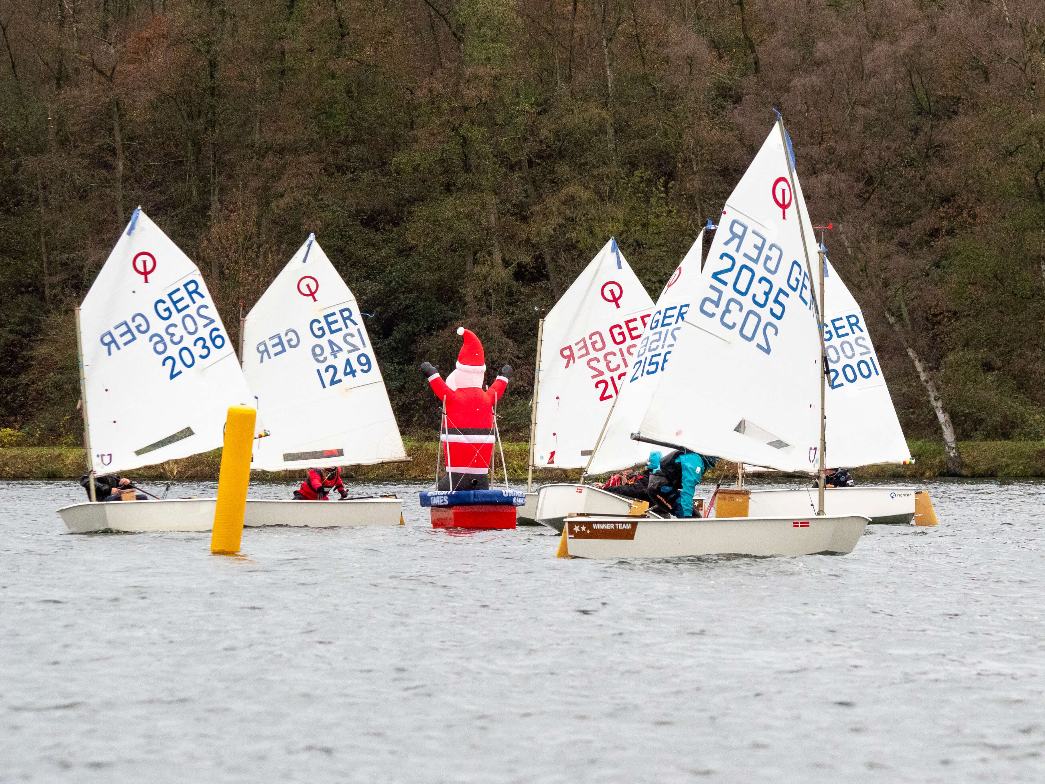 Am Samstag, dem Nikolaustag, wurden die Seglerinnen und Segler nach den Wettfahrten bei der Heimkehr zum ETUF noch auf dem Wasser vom Nikolaus erwartet, der sie mit Süßigkeiten beschenkte.