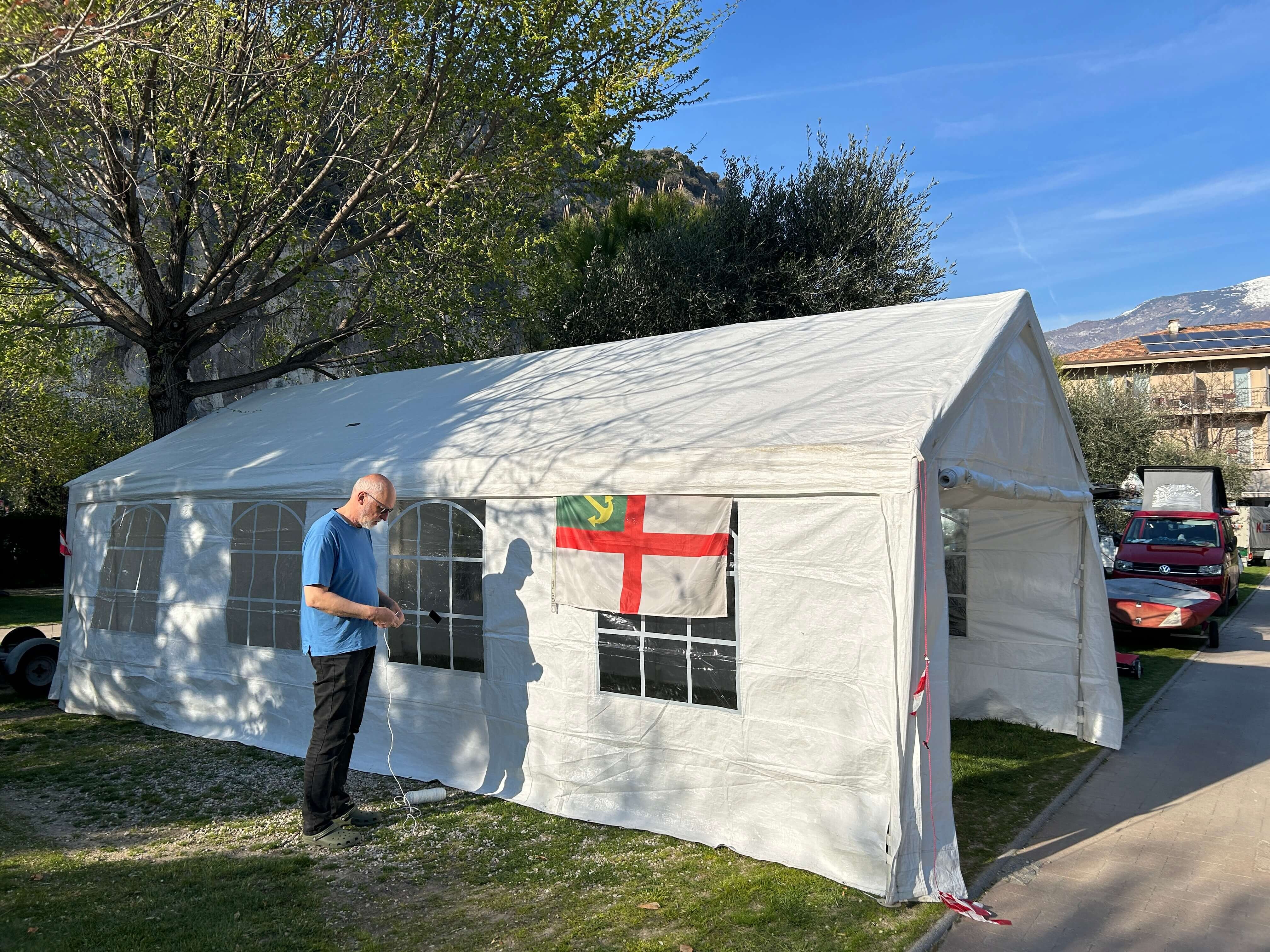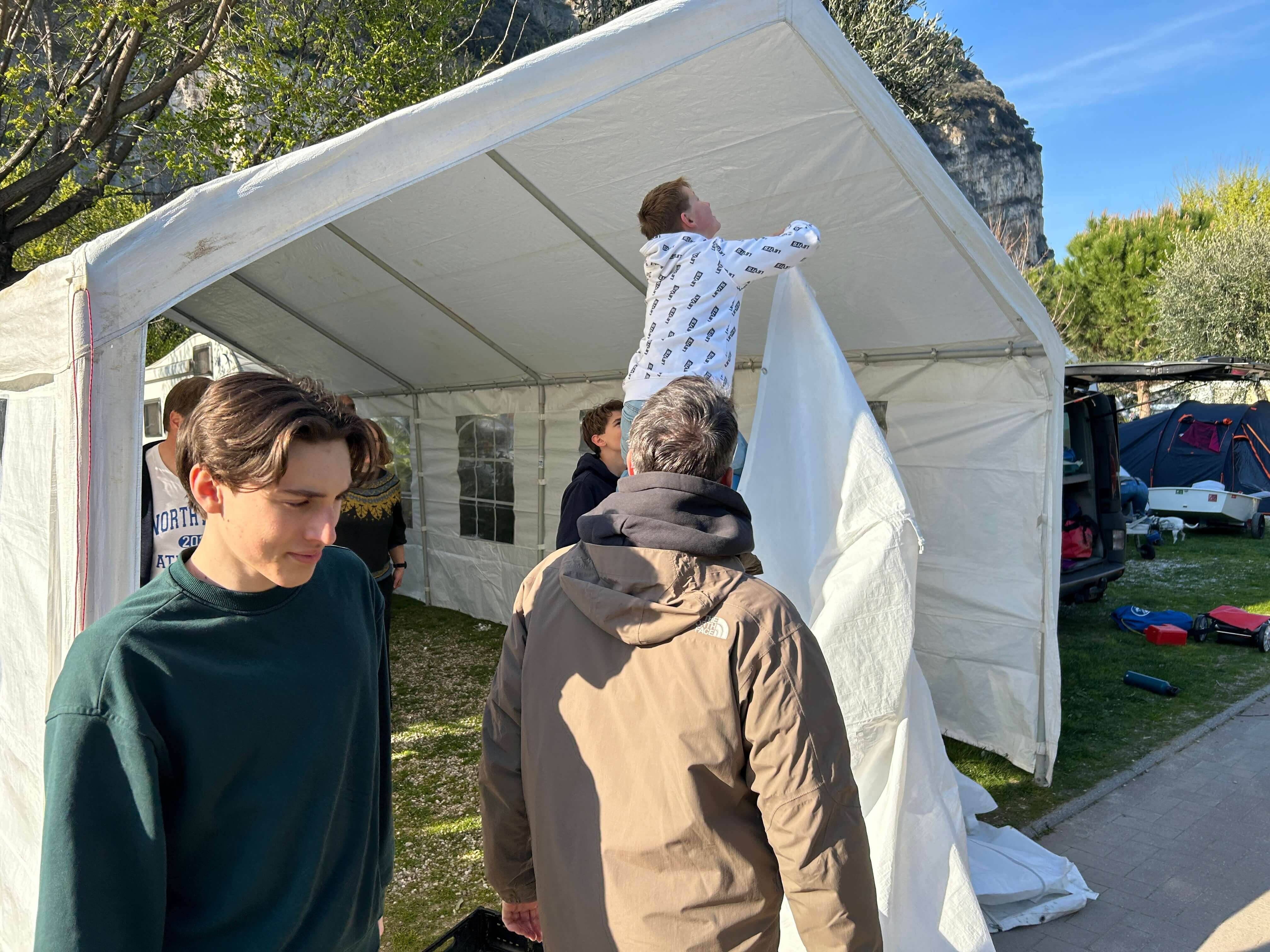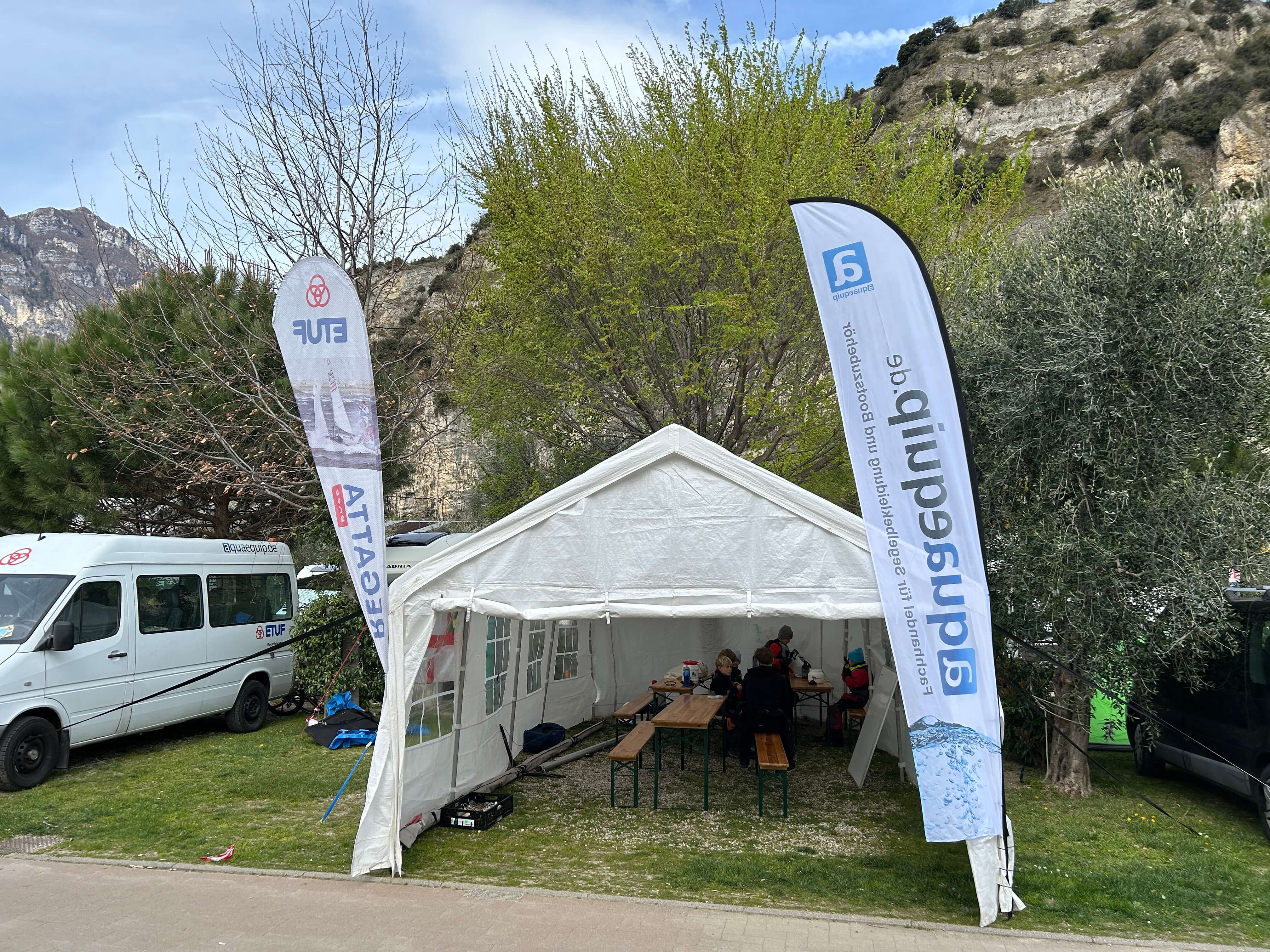Trotz der unterschiedlichen Leistungsniveaus und Bootsklassen gab es zahlreiche Berührungspunkte zwischen den Gruppen. Allgemeiner Treffpunkt war in diesem Jahr einmal wieder das große Zelt, das für Trainingsbesprechungen und Grillabende genutzt wurde