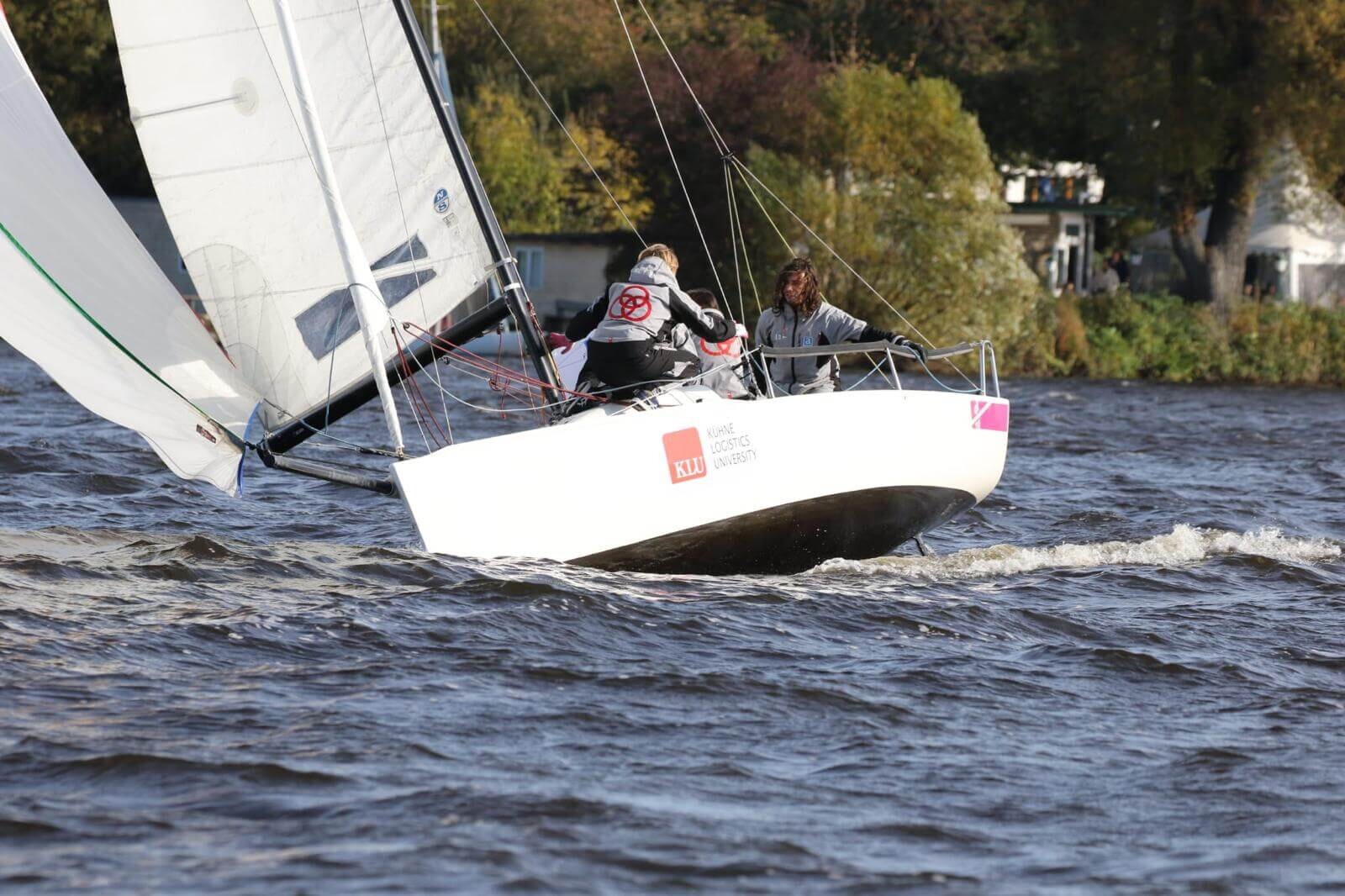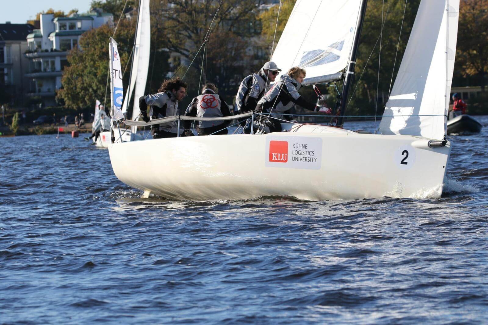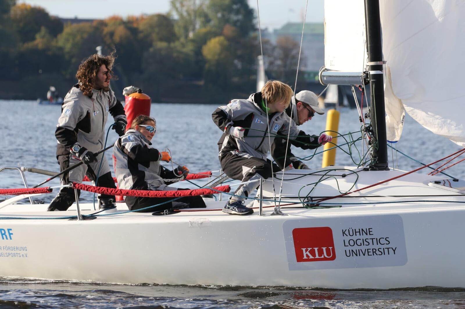 Am vergangenen Wochenende war das ETUF-Jugendliga-Team zum Saisonfinale der Deutschen Junioren Segel-Bundesliga beim Norddeutschen Regatta Verein (NRV) in Hamburg zu Gast. Gesegelt wurde auf der Alster, die mitten in der schönen Stadt Hamburg liegt und für seine drehenden, böigen Winde bekannt ist. Für den ETUF gingen Simon Klusch, Colleen Heck, Tienes Englert und Levin Kempken an den Start. Der Samstag begann mit strahlendem Sonnenschein, allerdings ohne den erhofften Wind. Nach einiger Wartezeit und viel Geduld wagte die Wettfahrtleitung am Nachmittag einen Versuch und konnte immerhin ein Rennen starten, bevor der Wind erneut einschlief. Der Tag endete schließlich an Land, wo der NRV für eine großartige Atmosphäre sorgte. Bei bestem Wetter, gutem Essen und einer kleinen Party im Clubhaus ließen die Teams den Abend gemeinsam ausklingen. Ein gelungener Tag, der trotz des fehlenden Windes für viel gute Laune sorgte. Am Sonntag drehte der Wind dann richtig auf: Bis zu 20 Knoten und die typischen, unberechenbaren Böen der Alster machten die Rennen anspruchsvoll und spannend. Dank des hervorragenden Shuttle-Services und der engagierten Wettfahrtleitung konnten sechs Flights gesegelt werden. Unser Team war dabei top ausgestattet mit der neuen Teamkleidung, die wir durch die Unterstützung unseres Sponsors AquaEquip erhalten haben – vielen Dank dafür! Auf dem Wasser entwickelte sich ein ereignisreicher Tag mit vielen spannenden Zweikämpfen und taktischen Herausforderungen. Besonders das letzte Rennen hatte es in sich: In einem packenden dreikampf beim Zieleinlauf konnten wir uns zumindest gegen eins der Teams durchsetzen und beendeten so den Tag nochmal mit einem motivierenden zweiten Platz. Insgesamt blicken wir auf ein rundum gelungenes Event zurück: super Organisation, faire Wettfahrten ohne Schäden und viele positive Eindrücke. Mit einem soliden Ergebnis im Mittelfeld schließen wir die Saison zufrieden ab, motiviert, im kommenden Jahr wieder anzugreifen