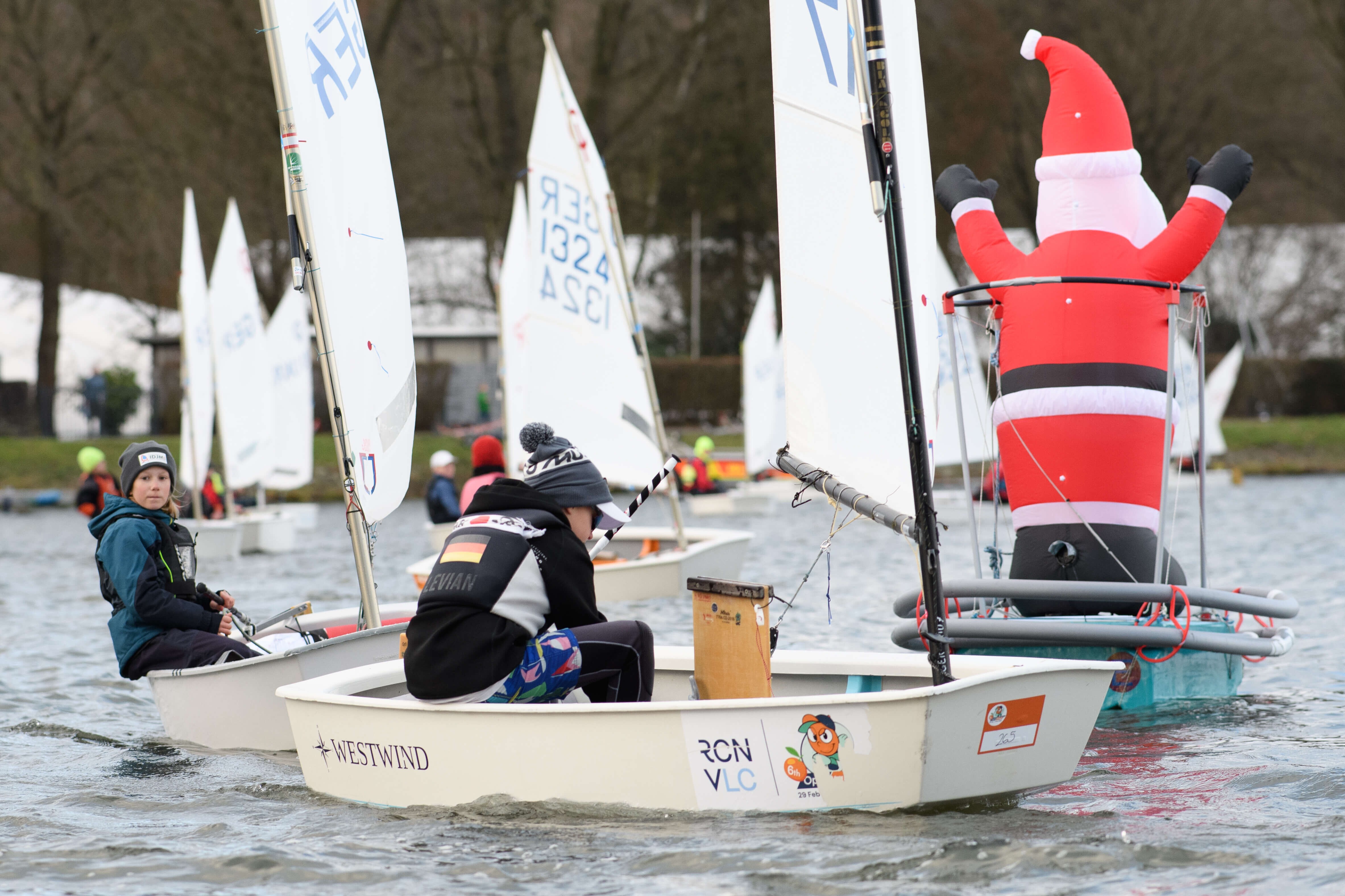 Am Sonntag frischte der Wind deutlich auf, sodass der Weg zur Startlinie, die wegen der gleichzeitig laufenden Stadtmeisterschaft ans Ende des Sees gelegt werden musste, schon eine Herausforderung für die Segelneulinge Johann und Valentin wurde. Semen und Elsa, ebenfalls in Opti C unterwegs, kämpften sich durch den ersten Lauf und wurden mit Platz 2 und Platz 3 belohnt. Johanna, die schon mutig in Opti B an den Start ging, fühlte sich dem Wind auch noch nicht gewachsen. Rosa und Frederik profitierten davon, dass sie dieses Jahr schon einige Erfahrung mit Wind und Welle sammeln konnten und segelten im B-Feld vorne weg. Rosa konnte sich nach Platz vier am Samstag auf Platz 2 insgesamt vorarbeiten und Frederik holte sich den Gesamtsieg.